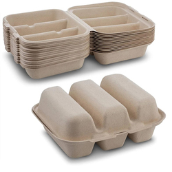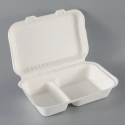 9*6 inç biyobozunur şeker kamışı Bagasse 2 bölme kapaklı gıda konteyner tasfiye gıda ambalaj yemek kabı